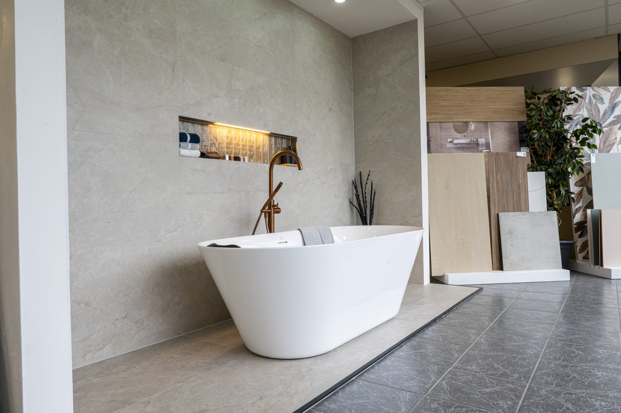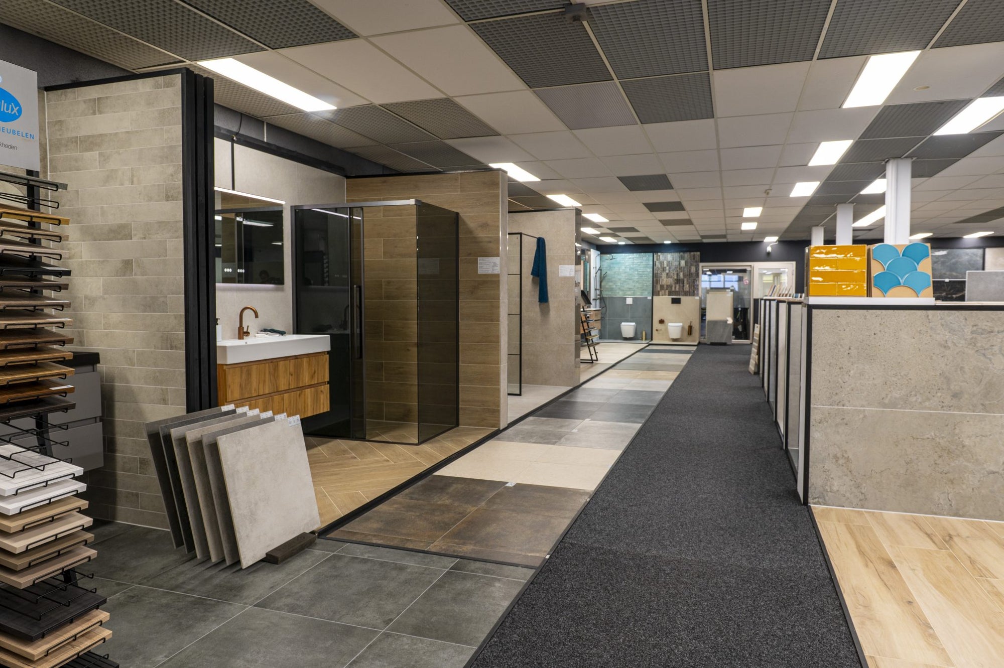 Iedereen is van harte welkom in onze schitterende showroom in Apeldoorn! Hier vind je volop inspiratie voor je badkamer, keuken of vloerproject. Met honderden tegelsoorten, complete sanitairoppstellingen, stijlvolle PVC vloeren en alle tegeltoebehoren onder één dak, kun je rustig rondkijken en vergelijken.